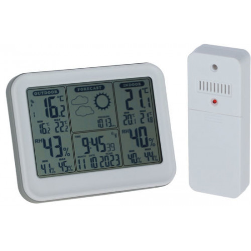 Digitaal draadloos weerstation met binnensensor en aparte buitensensor. Bedoelt voor het meten van vochtigheid en temperatuur. Naast dat ook een weersvoorspelling en temperatuur.